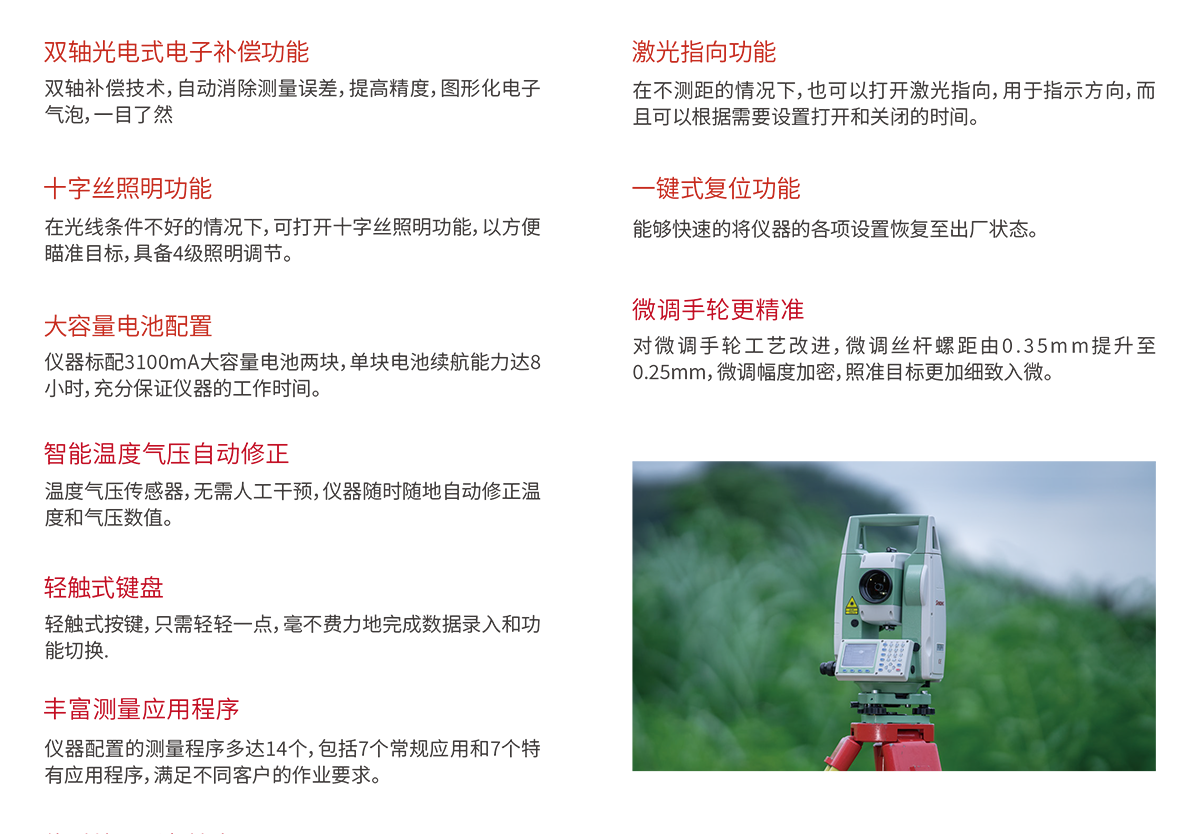 ¾«¶È | 0~500m£º¡À£¨3+2¡Á10-6¡¤D£©mm 500~1000m£º¡À£¨5+2¡Á10-6¡¤D£©mm 1000~2000£º¡À£¨10+2¡Á10-6¡¤D£©mm |